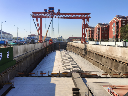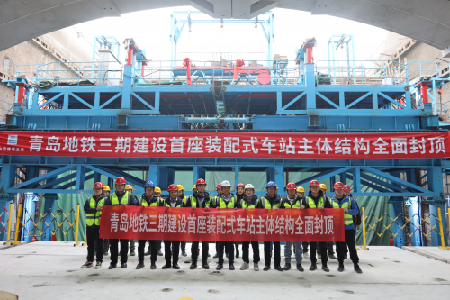 营普路站、北安站为青岛地铁三期工程首座装配式车站,也是中建五局承建的首座装配式地铁车站。其中营普路站总长度275.7m,装配段长214m,共107环,构件起吊重量超60吨。