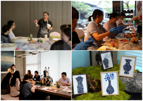 “古风宋韵,穿越千年”沉浸式体验活动成为焦点。“宋锦”课堂上,非遗讲师细致讲解宋锦历史与织造技艺,客户们不仅触摸到宋锦的细腻质感,更在指导下亲手缝制宋锦挂件,让千年非遗在指尖焕发生机;“宋点”体验区,在师傅指导下,参与者学习制作兼具美味与美观的茶点,体验宋代文人“小食代茶”的生活情趣;“宋瓷”青花瓷拼画手作中,参与者用心勾勒青花线条,将宋代美学融入创意作品;“宋茶”体验环节,茶艺师演示“分茶”技艺,客户手持茶筅击拂茶汤,感受宋代文人的雅致闲情;在“宋陶”手作区,揉泥、拉坯、修坯……大家亲手创造属于自己的陶艺作品,体验泥土在指尖成形的过程,感受宋代工艺的匠心独运。