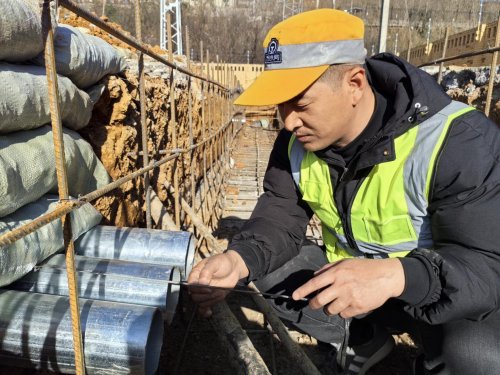 祝广武进行预埋电缆管道铺设作业(周颖摄)